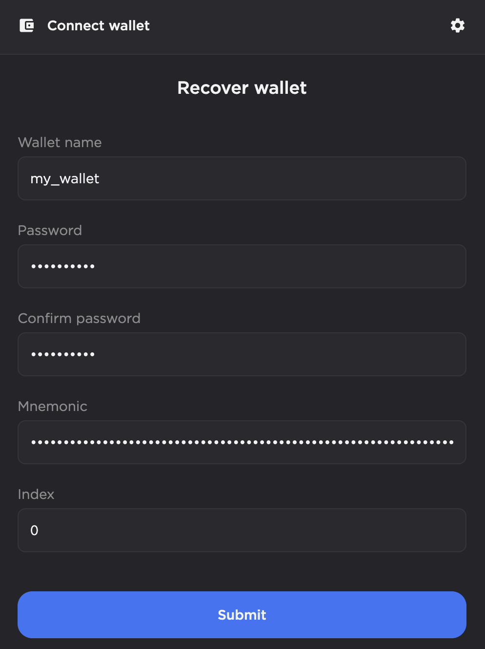 - Click Recover Wallet.