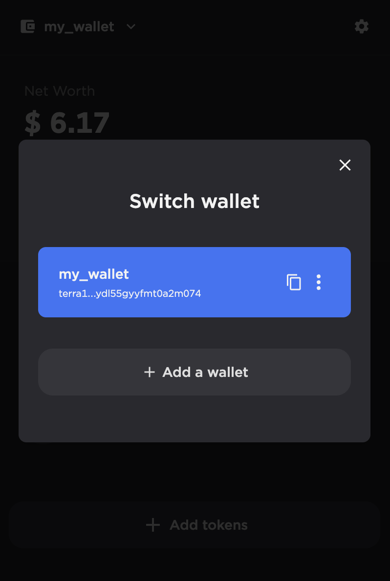 - If you are already signed in to another wallet, click on your wallet name and then click Add a wallet.